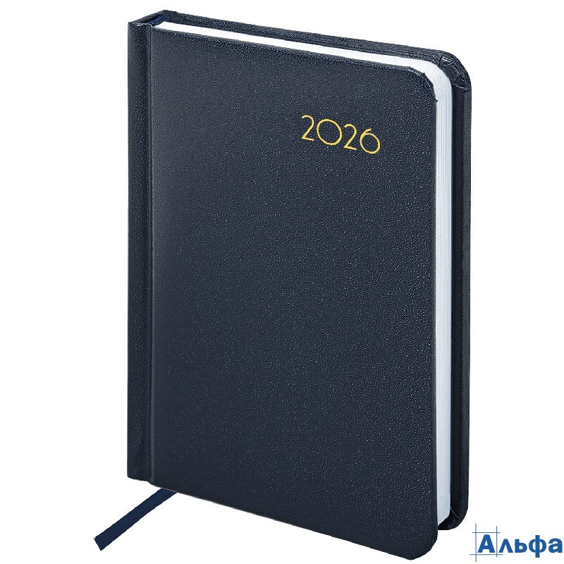 2026 Ежедневник датированный 100х150 мм А6 Brauberg Select балакрон темно-синий 117259