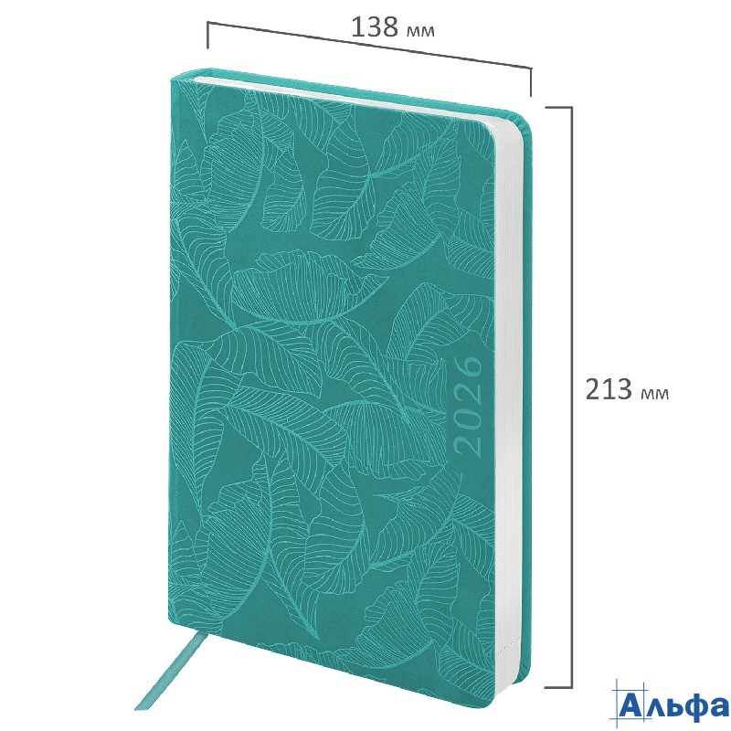 2026 Ежедневник датированный А5 138x213 мм Brauberg Foliage под кожу гибкий бирюзовый 117127