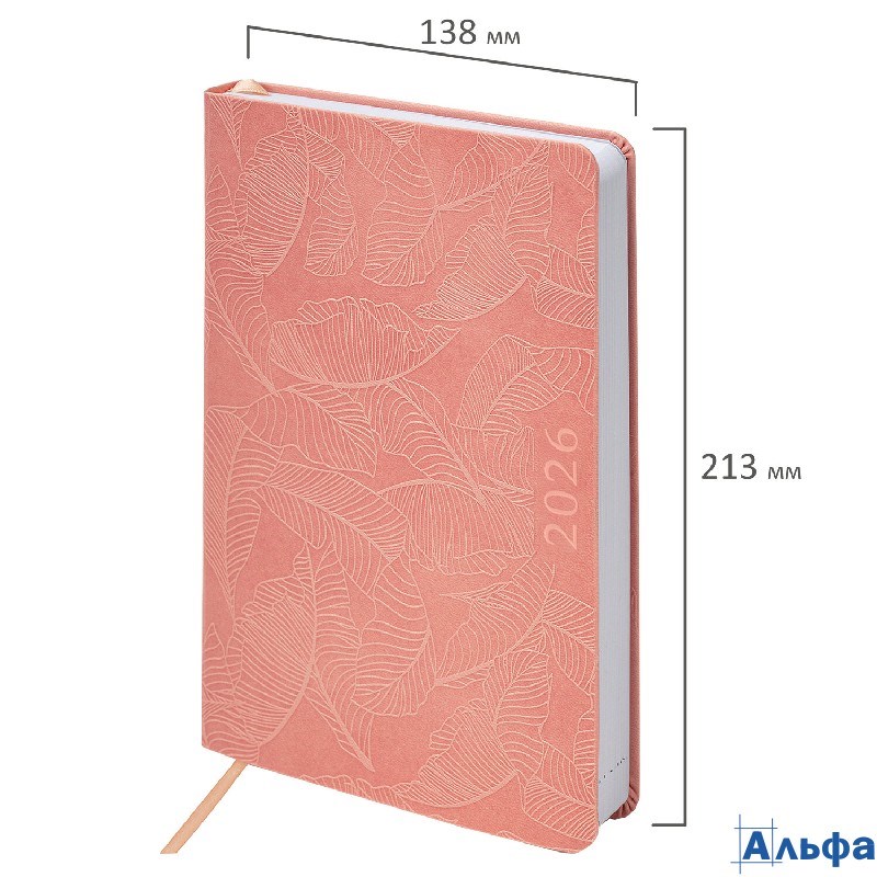 2026 Ежедневник датированный А5 138x213 мм Brauberg Foliage под кожу гибкий розовый 117129