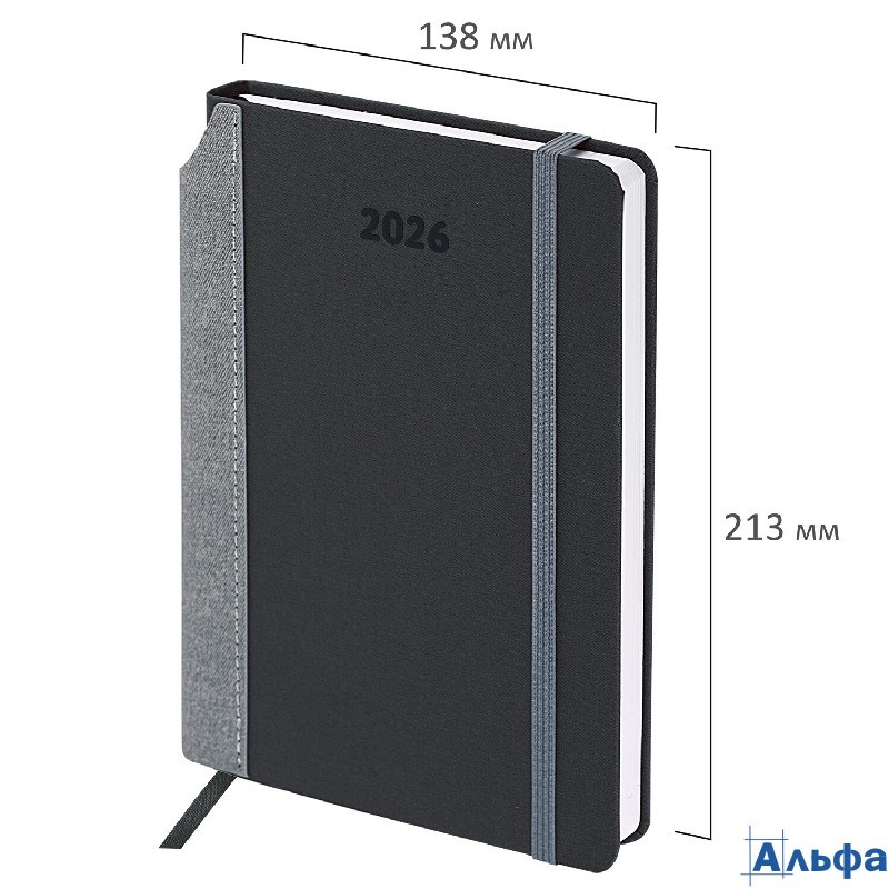 2026 Ежедневник датированный А5 138x213 мм Brauberg Mosaic под кожу карман для ручки черный 117114
