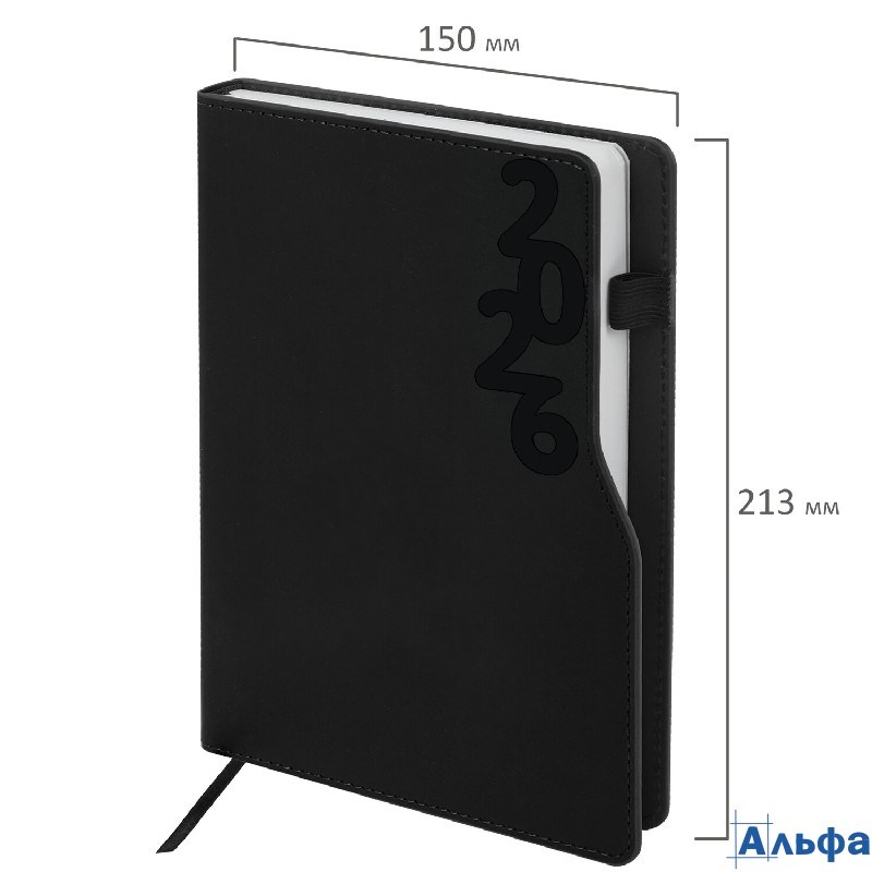 2026 Ежедневник датированный А5 150x213 мм Brauberg Up под кожу софт-тач держатель для ручки черный