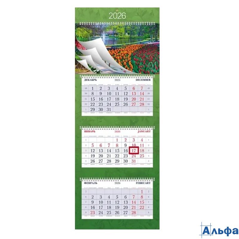 2026 Календарь 3-блочный (12 сменных постеров) 320х840мм Гребень Прекрасные парки 12 постеров HATBER