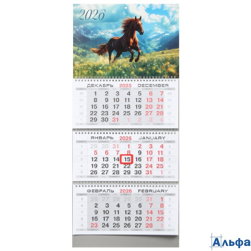 2026 Календарь 3-блочный 300х690мм Гребень Бегущая лошадь Klerk 260017