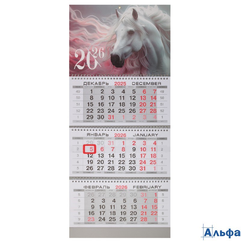 2026 Календарь 3-блочный 300х690мм Гребень Белая лошадь Klerk 260020