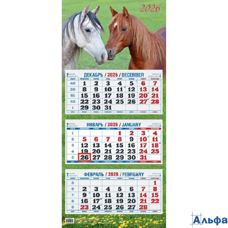 2026 Календарь 3-блочный 310х680мм Гребень Год Лошади. Вид 3 УФ-лак Атберг КБ20-26