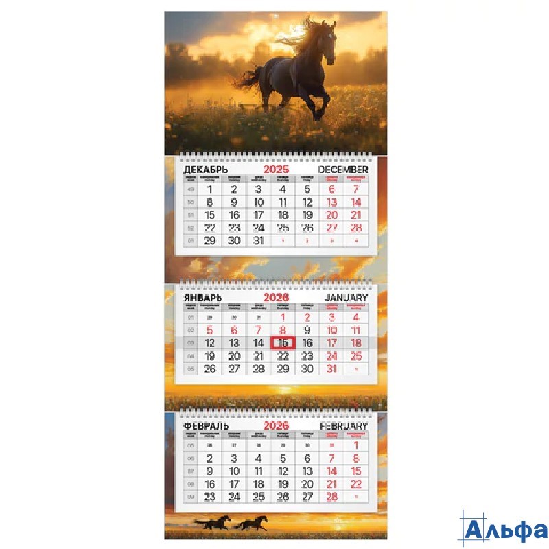 2026 Календарь 3-блочный Brauberg PREMIUM Символ года 116830
