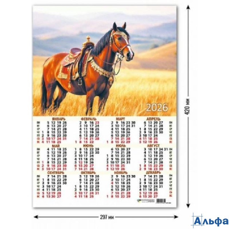 2026 Календарь листовой А3 Символ года А3 9684 Квадра