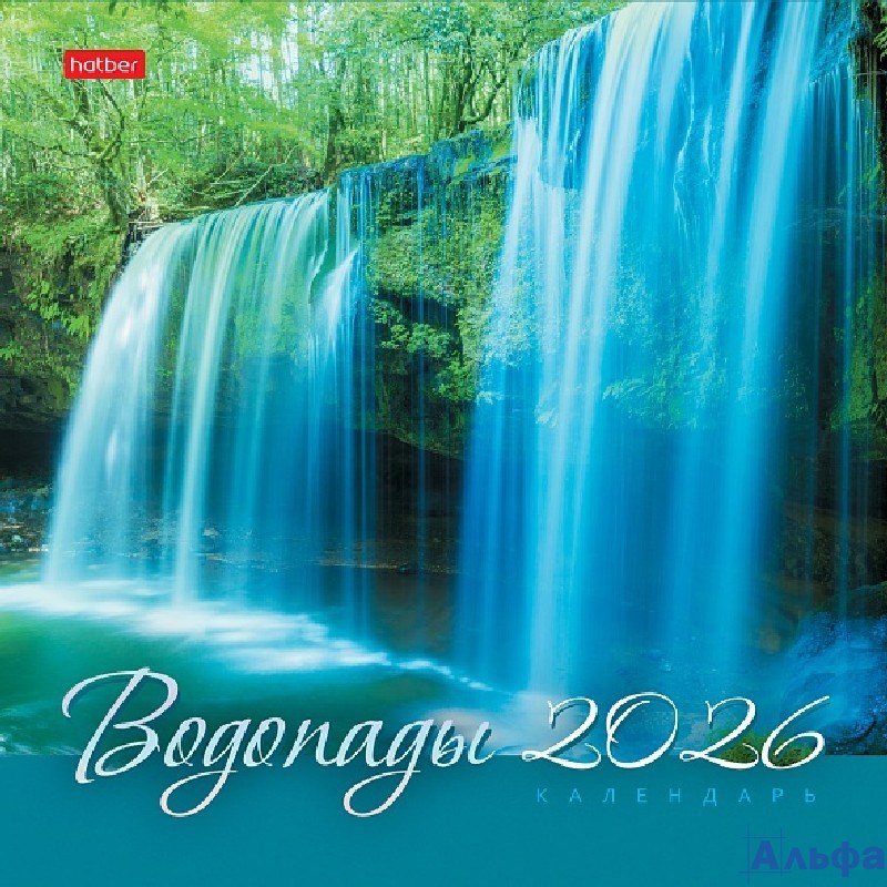 2026 Календарь перекидной 220х220мм Скрепка 12л Водопады Хатбер 12Кнп5_34313