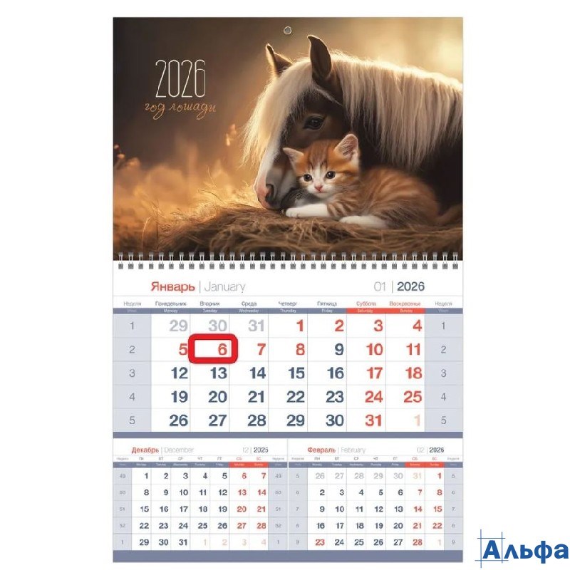 2026 Календарь перекидной 295х475мм Гребень 12л Mono premium Дружба магнит.курсор BG 380926
