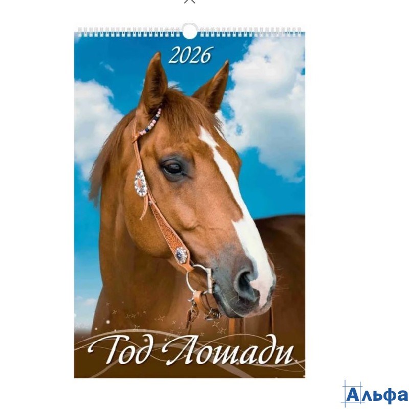 2026 Календарь перекидной 320х480мм Гребень+ригель 6л Год лошади Вид 1 УФ-лак Атберг 0526005