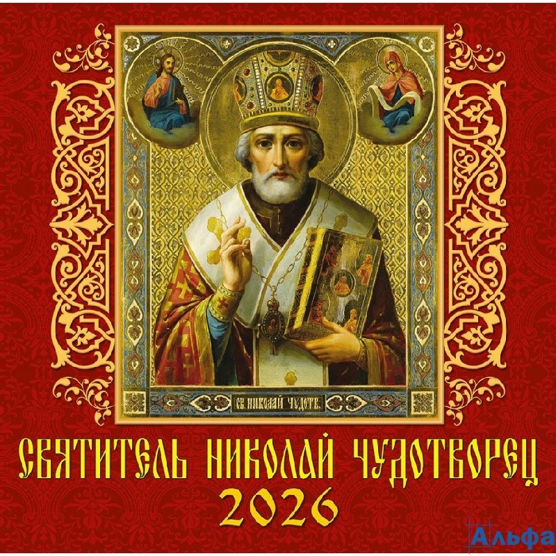 2026 Календарь перекидной на скрепке Святитель Николай Чудотворец 300 х 300 70615 ДеньЗаДнем