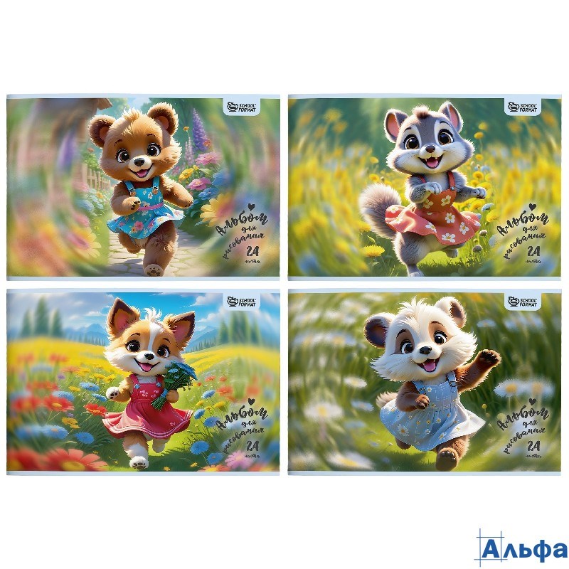 Альбом 24 листа для рисования А4 скрепка На полянке сплошной УФ-лак, 100г/м2 АЛ24-НП SchoolФормат 4/