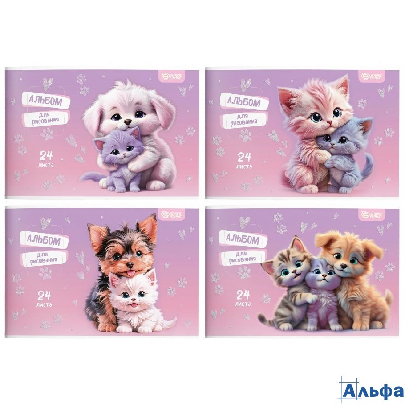 Альбом 24 листа для рисования А4 скрепка Обнимашки выборочный УФ-лак, блестки, 100г/м2 АЛ24-О School