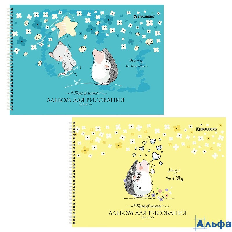 Альбом для рисования А4 32 листов гребень Brauberg 195х285 мм Ёжики (2 вида) 106698