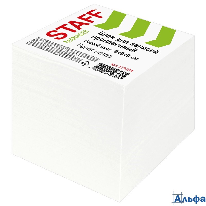 Блок бумажный проклеенный куб 9х9х9 см белый белизна 90-92% Staff 129204