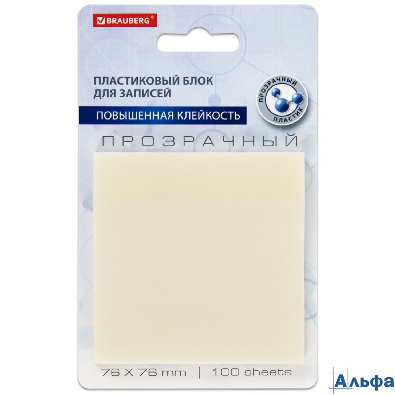 Блок самоклеящийся (стикеры) прозрач. 76х76 мм 100 листов Brauberg Transparent 115205