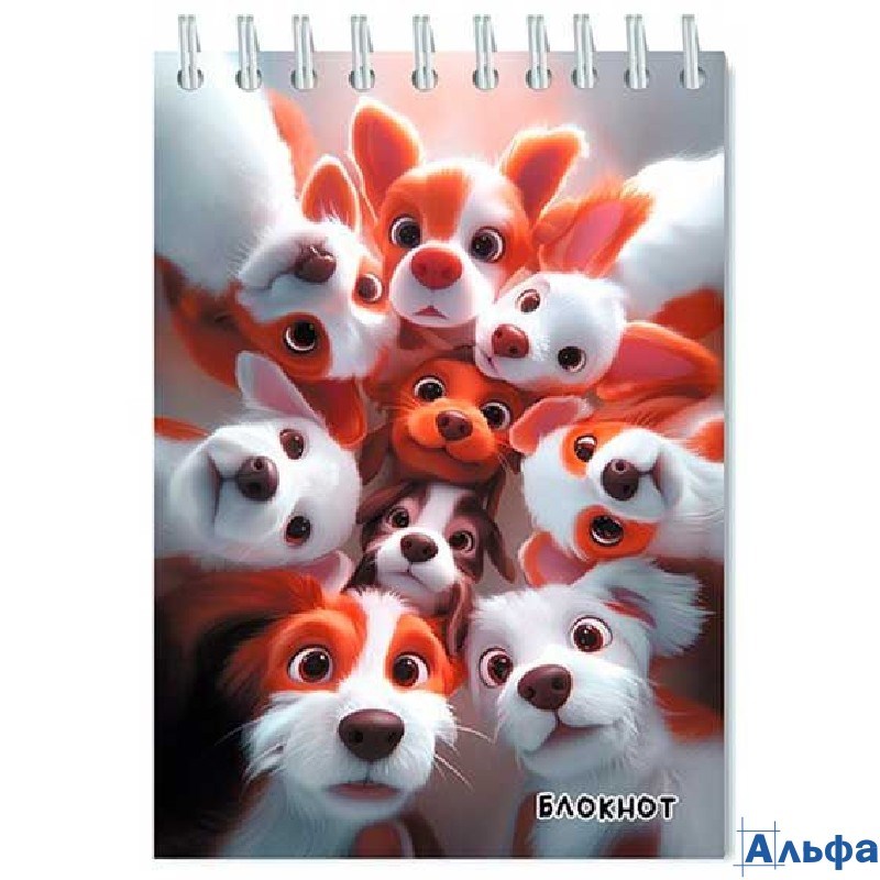 Блокнот А6 48л клетка гребень мягк.обл. Щенки. Селфи друзья блестки АППЛИКА С0511-160