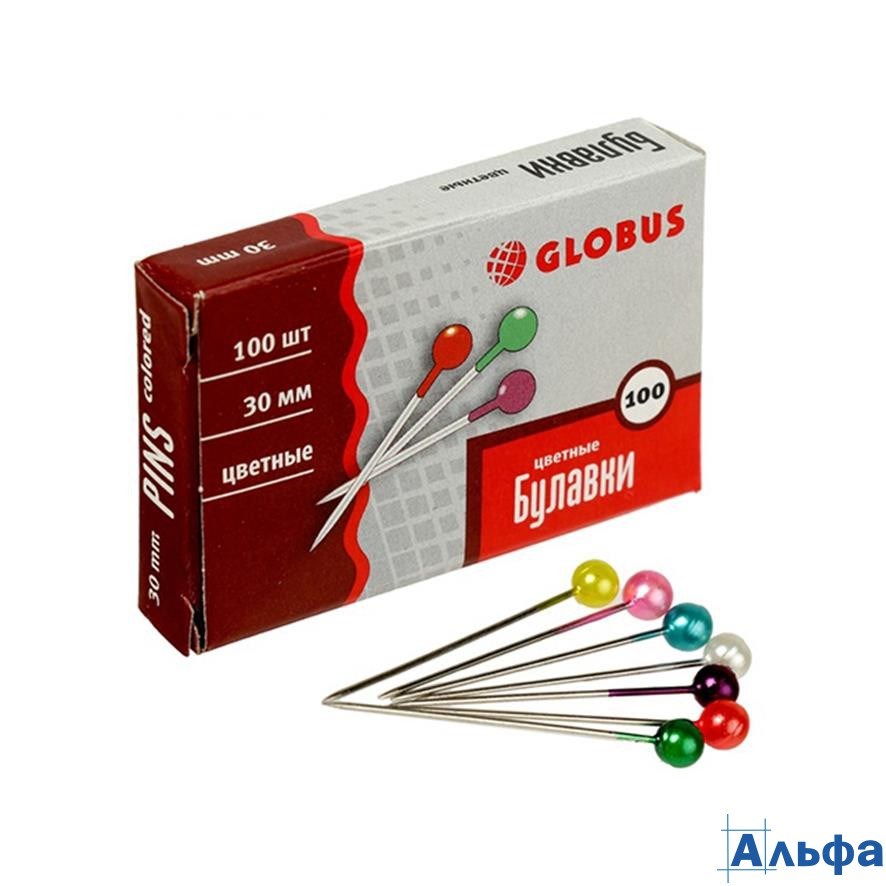 Булавка офисная одностержневая 100шт 30мм цветные головки БК30-100Ц Глобус