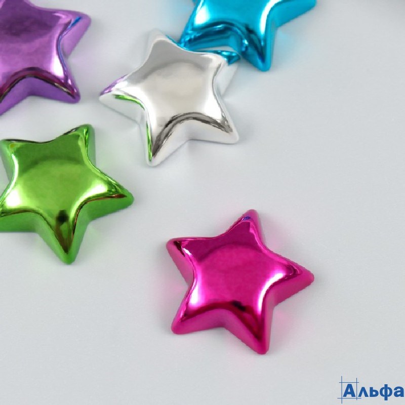 Бусина пластик с несквозным отверстием Звезда глянцевый металлик 2.5×2.5×0.7 см микс 10318956