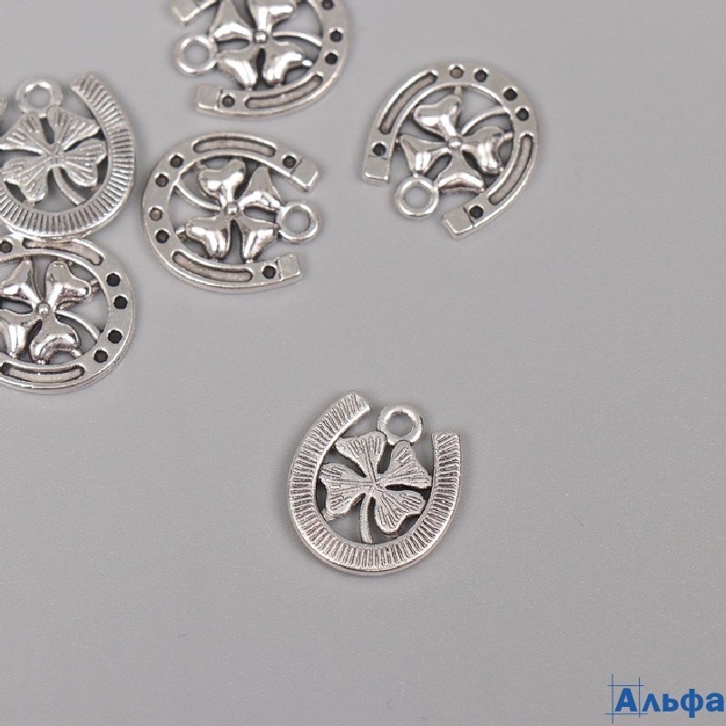 Декоративная подвеска Подкова с клевером 1.1×1.4 см 10473381 цена за 1 штуку