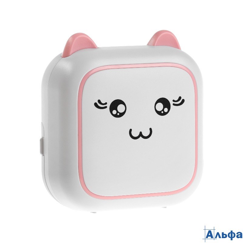 Детский мини принтер для печати с телефона Кот модель LPR-19 кабель Туре-С розово-белый 10486153