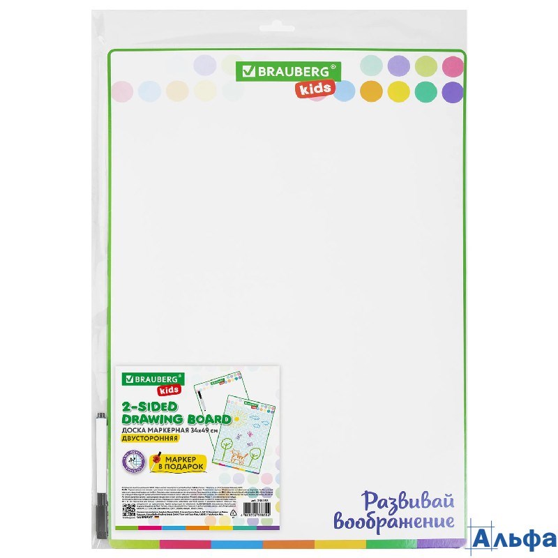 Доска для рисования с маркером двухсторонняя в клетку/белая 34х49 см (А3) Brauberg 238153