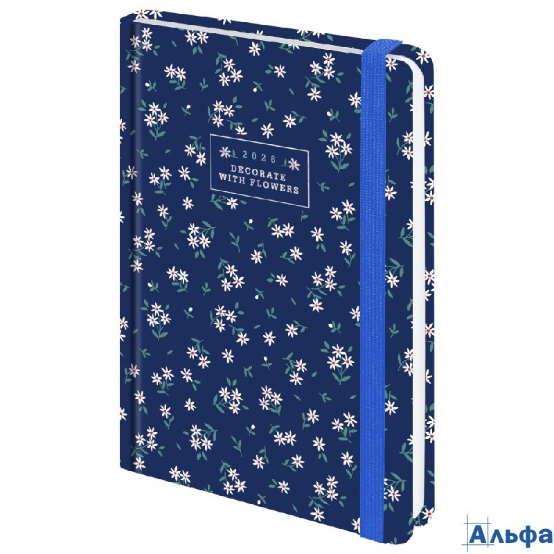 Ежедневник датированный 2026 с резинкой 145х203 мм А5 Brauberg твердый фольга Ромашки 117346