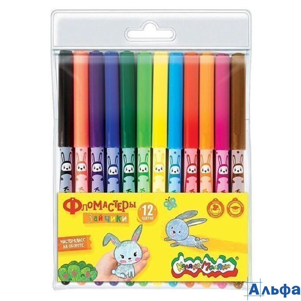Фломастеры 12цв. Зайчики вент. колп. принт на корп. ФПРКМ12 Каляка-Маляка 208896