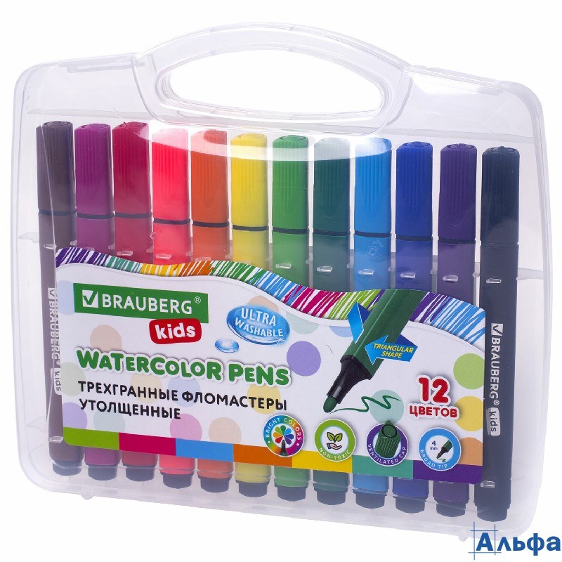 Фломастеры утолщ. 12 цв. Kidsв пласт.футляре Brauberg 152191