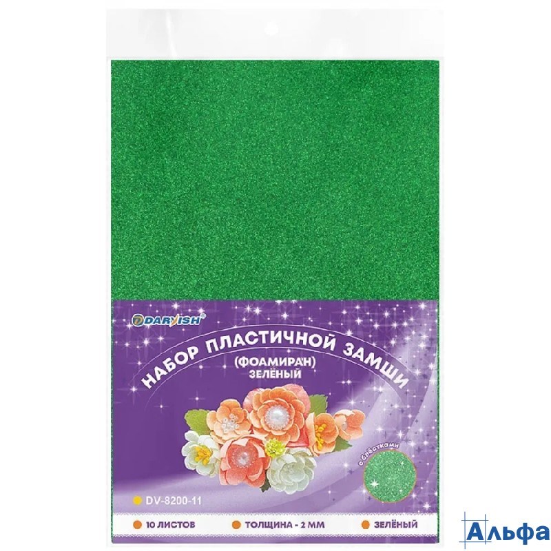 Фоамиран А4 10л 1цв 2мм с блестками зеленый Darvish DV-8200-11