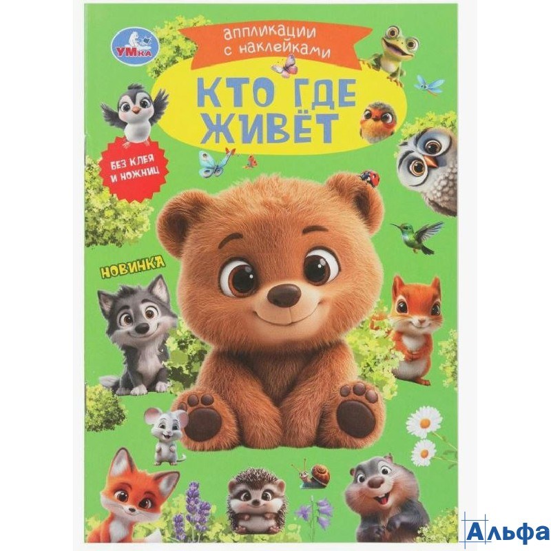 изд-во Умка КнАппл Аппликации с наклейками. Кто где живет. Без клея и ножниц