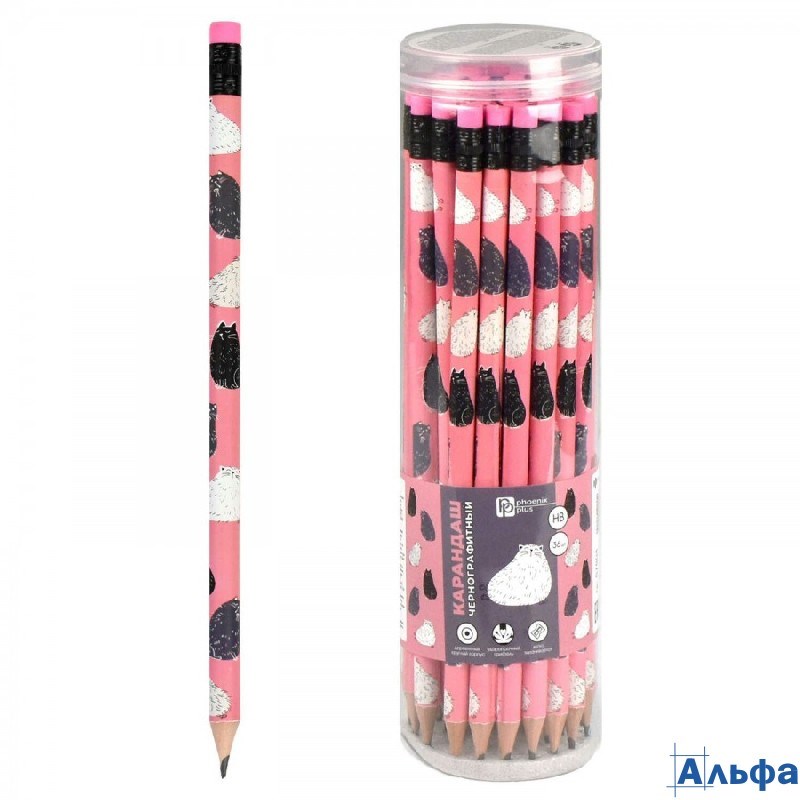 Карандаш чгр HB Котики с ластиком 67804 Феникс