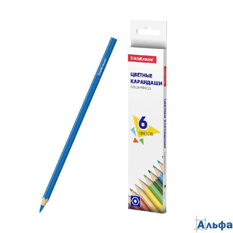 Карандаши цветные 6цв 6-гран. дерево Basic карт.уп. Erich Krause 50528