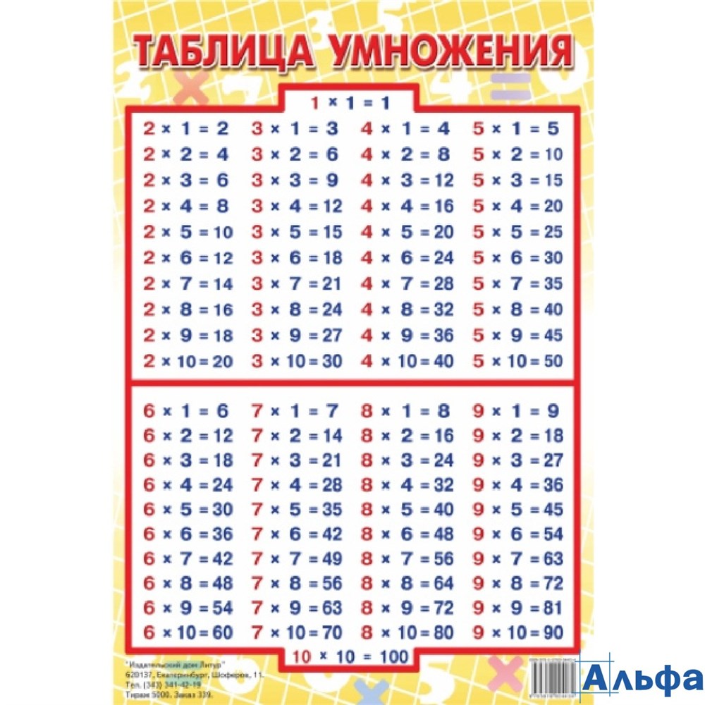 Карточка Таблица умножения. Мини 95 х 140 Литур