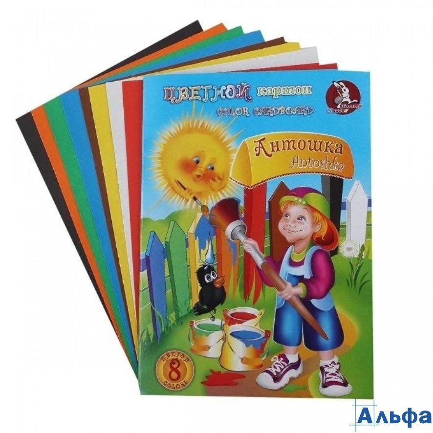 Картон цветной А4 08л 08цв.Антошка немел. НКЦ201 Лилия
