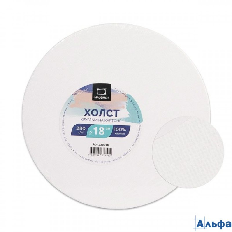 Холст на картоне 280г/м2 хлопок 100% круглый d=18см 220018 Малевичъ