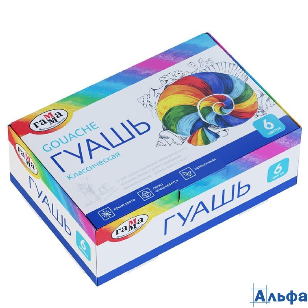 Краска гуашь 06цв 20мл Классическая 2210306 Гамма