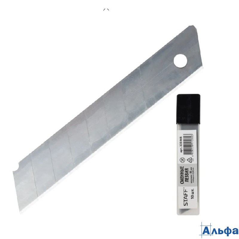 Лезвия для канцелярского ножа 18мм большие пласт.пенал 10шт STAFF 235466