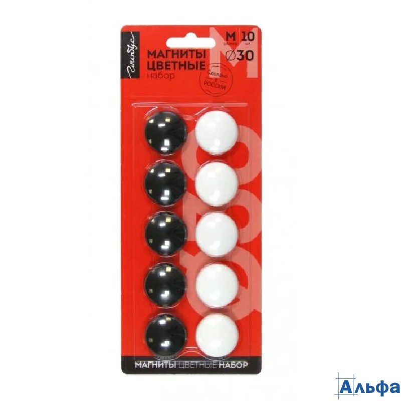 Магниты для доски d-30мм набор 10шт черно-белые Глобус МЦ30-10/1