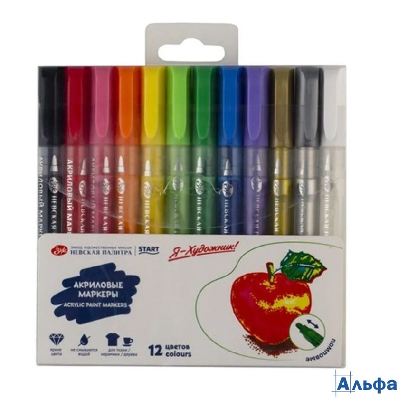 Маркеры акриловые в наборе 12цв 2мм Я-Художник! помповые европодвес Невская палитра 323422600