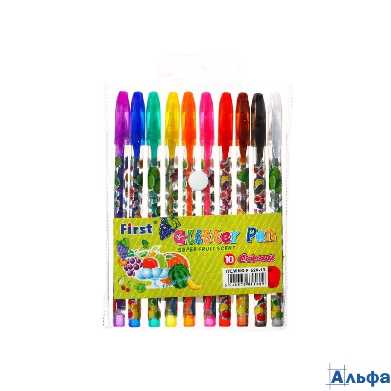 Набор гелевых ручек 10 цветов металлик корпус с рисунком в блистере на кнопке 893044