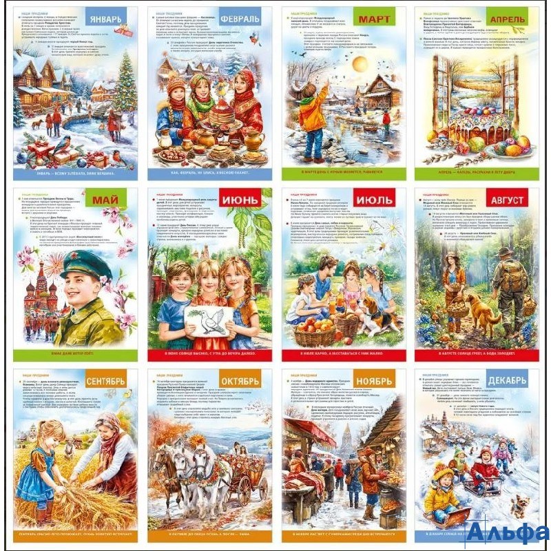 Набор мини-плакатов А4 Россия. Любимые праздники и традиции 12шт 7.0000776 Мир поздравлений