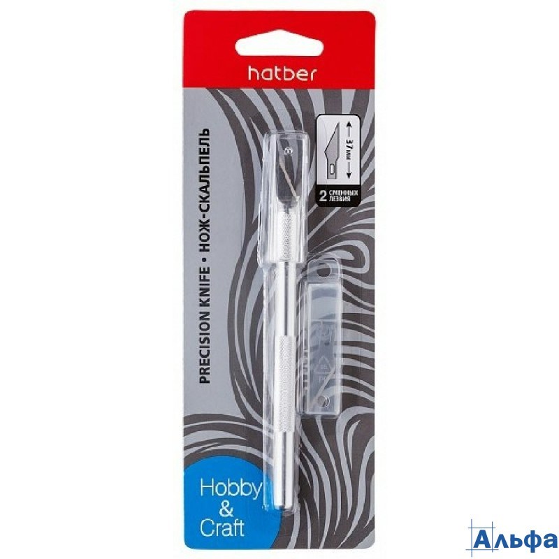 Нож скальпель 37х9мм d=8мм металлический корпус 2 запасных лезвия блистер 060166 UK_060166 Хатбер 06