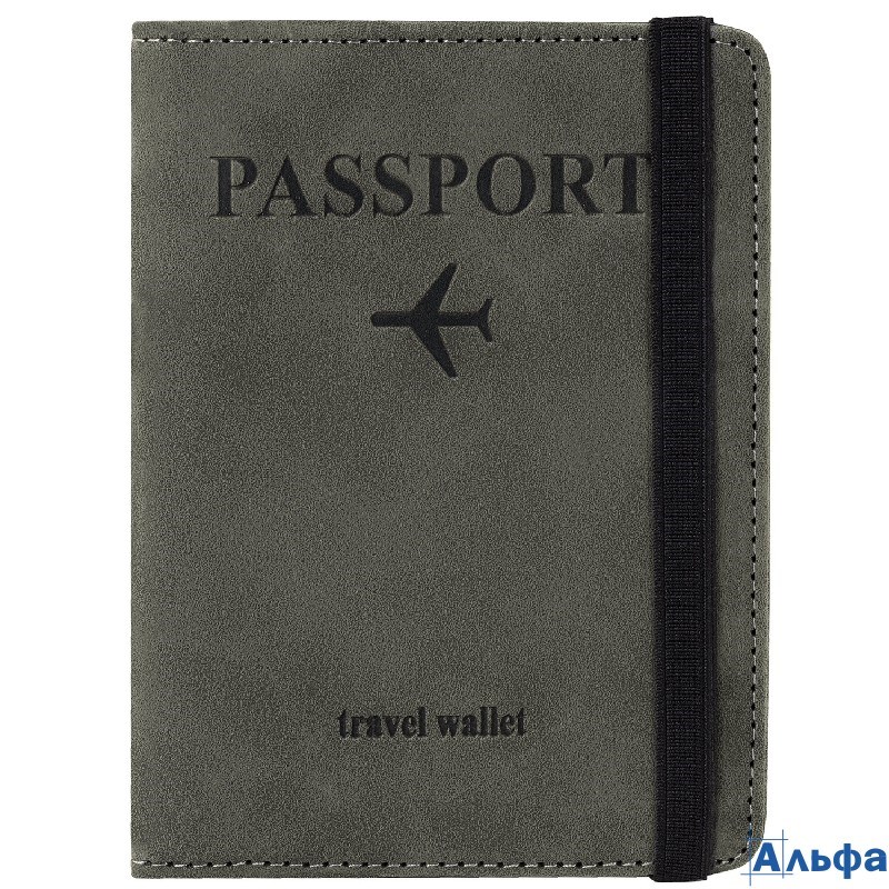 Обложка для паспорта и документов с защитой от считывания 9 карманов резинка экокожа графитовая Brau