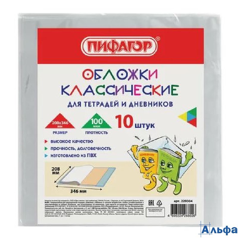 Обложки в наборе 208х346мм 10 шт. ПВХ 100 мкм 229304 Пифагор