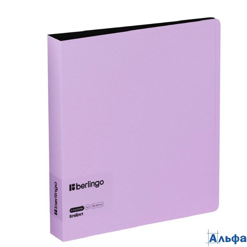 Папка 4 кольца пластик А5 торец 35мм d-30мм пл.700мкм +карм. Instinct лаванда BERLINGO RB4_A5507
