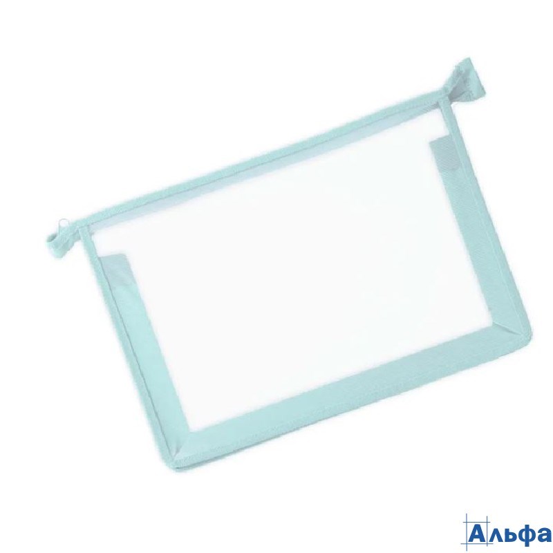 Папка для тетрадей пластик молния сверху А4 1отд. прозр. мятная Пчелка ПМ-А4-02