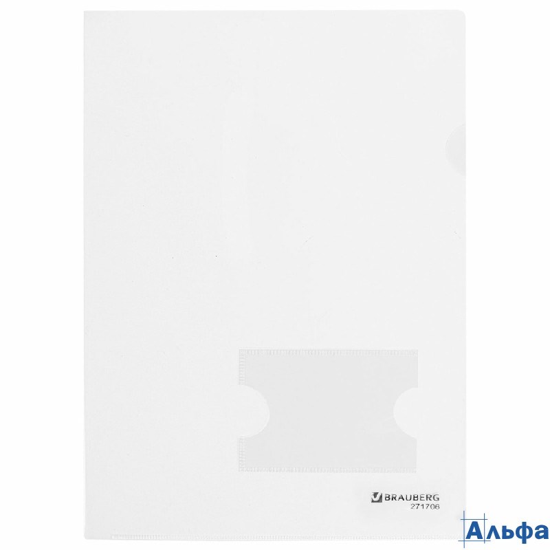 Папка-уголок с карманом для визитки А4 прозрачная 0,18 мм Brauberg Extra 271706