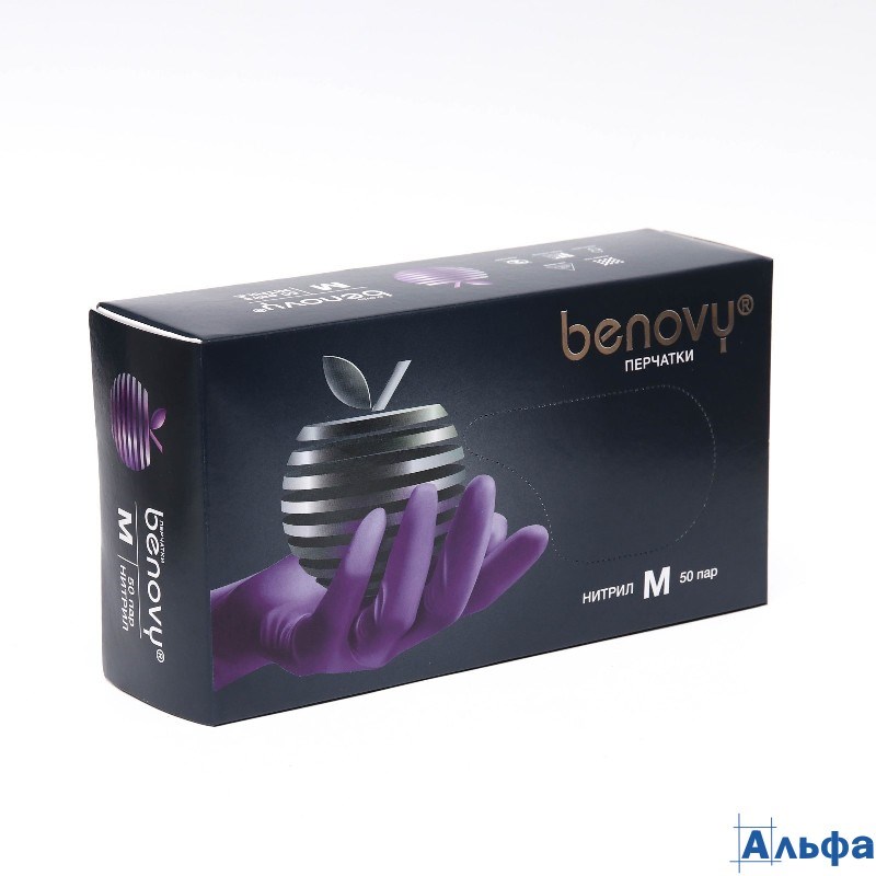 Перчатки нитриловые смотровые 50 пар (100 шт.) размер M (средний) BENOVY Nitrile Chlorinated