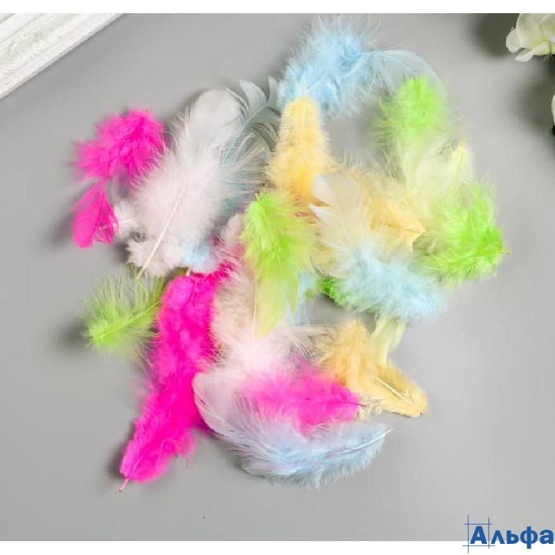 Перья декоративные в наборе Карнавальные 5-8 см 24 шт. 6 цветов 5132647